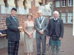 That May weekend a pipe band competition was held in their honor and we were guests of honor sitting the VIP tent with the officials, afterwards at the council chambers balcony we took the salute as the massed bands paraded for the prize giving.....I FELT LIKE THE QUEEN smile.gif  By this time I was full of malt whisky that I was forced to drink !! ( just like homecoming gathering)